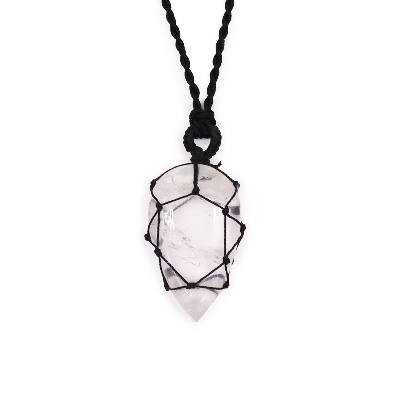 Laced Gemstone Teardrop Pendant featuring the pristine beauty of Rock Quartz. Crafted with precision in the heart of India, this pendant is a stunning testament to the country's rich tradition of craftsmanship. The teardrop shape, known for its classic and timeless elegance, beautifully enhances the inherent charm of Rock Quartz. This gemstone is renowned for its clarity and purity. Its subtle yet enchanting appearance allows it to complement a wide range of styles and outfits. Each teardrop pendant is laced, ensuring that the natural beauty of the Rock Quartz gemstone takes centre stage. Moreover, the adjustable string adds versatility to the pendant, allowing it to be customised to the wearer's desired length. The Rock Quartz Teardrop Pendant is a perfect addition to any jewellery collection. Its beauty and symbolism make it an ideal choice for those seeking clarity, purity, and a touch of elegance. Whether worn alone or combined with other pieces, this pendant is sure to captivate and enchant.