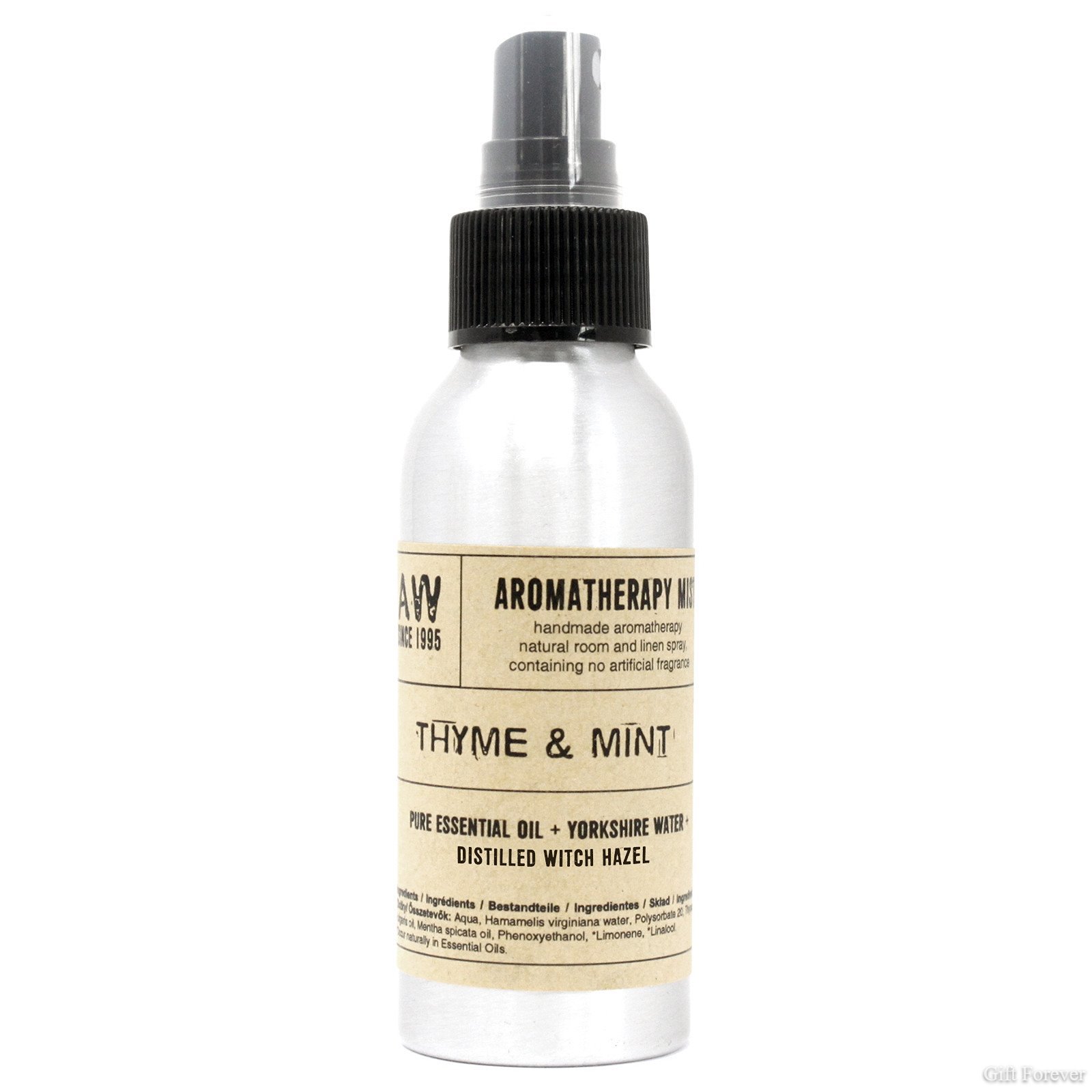 Aqua, Hamamelis virginiana water, Polysorbate 20, Thymus vulgaris oil, Mentha spicata oil, Phenoxyethanol, *Limonene, *Linalool.*Occur naturally in Essential Oils