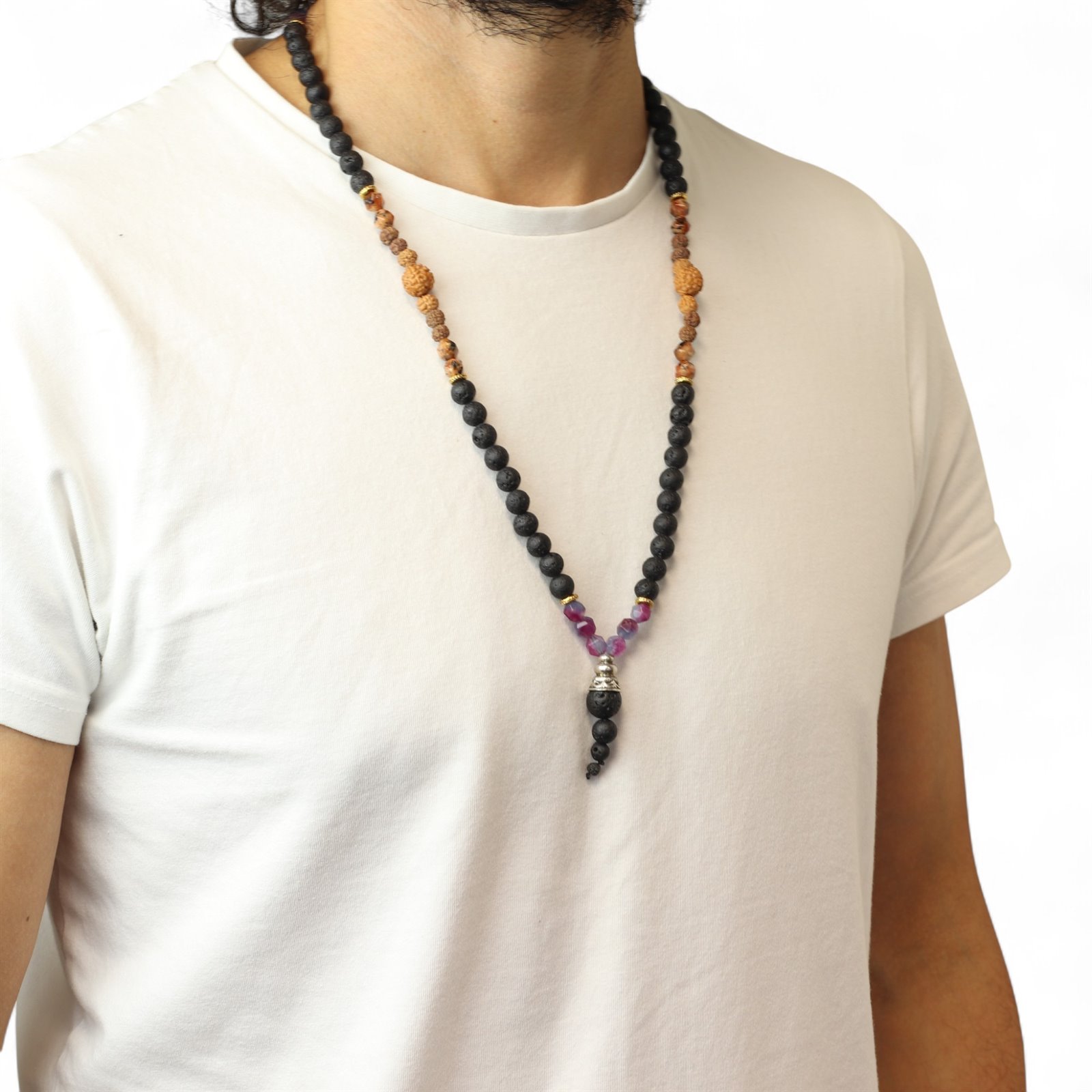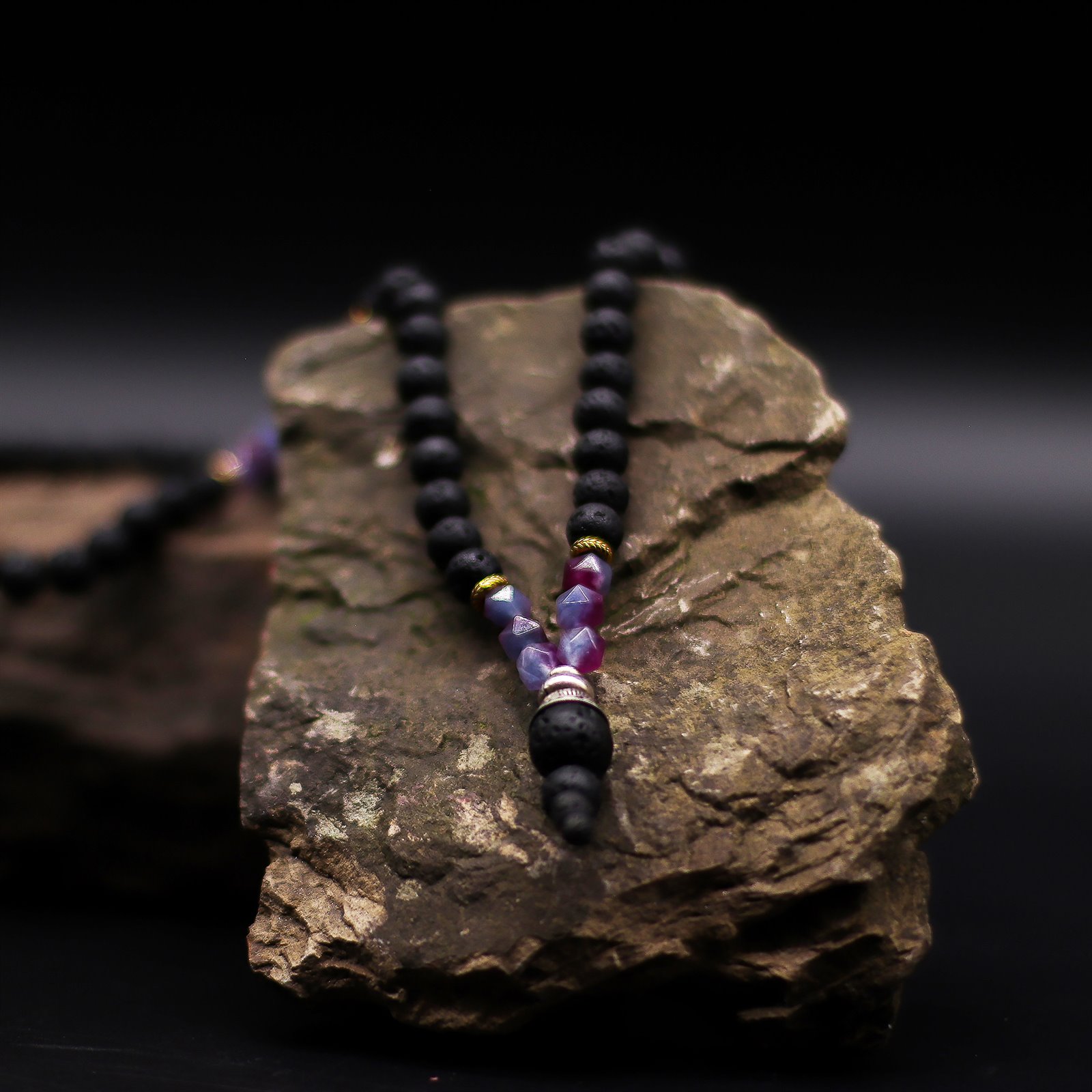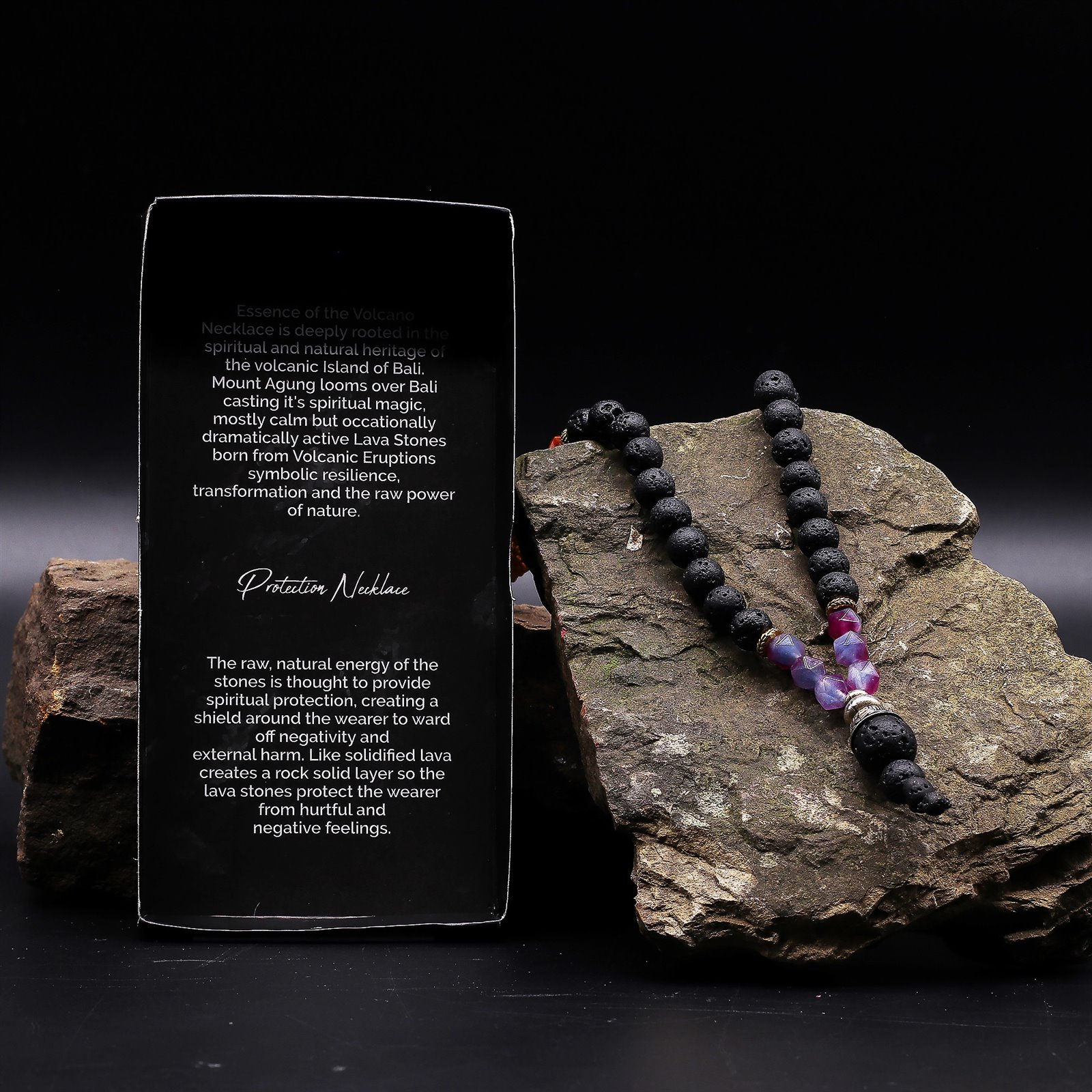 Essence of the Volcano Necklace – Embracing the Dark Side Handcrafted in Indonesia, the Essence of the Volcano Necklace – Embracing the Dark Side invites reflection, courage, and transformation. Each bead is formed from natural lava stone — a material born from molten earth and cooled by time — representing strength, grounding, and the power to face inner shadows. This design combines deep black lava beads with rich orange and purple gemstone beads, symbolising spiritual balance and awakening. It embodies the belief that embracing our fears and hidden truths is the path to healing and growth. Handmade in Indonesia using natural volcanic lava stones. Symbolises transformation, grounding, and emotional strength Perfect for spiritual, yoga, and crystal jewellery collections Comes in a beautiful gift box with story card explaining its meaning offering mindful, meaningful, and giftable jewellery. More than an accessory, it’s a wearable affirmation of courage and renewal. Add the Embracing the Dark Side Necklace to your stock today and a symbol of inner power and self-discovery.